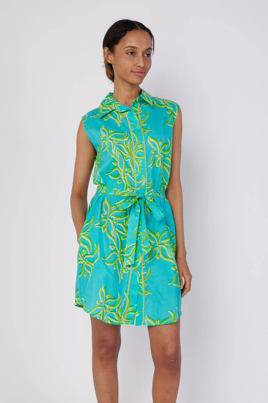 Carlotta Blue Green Resort Wear Summer Shirt Dress
