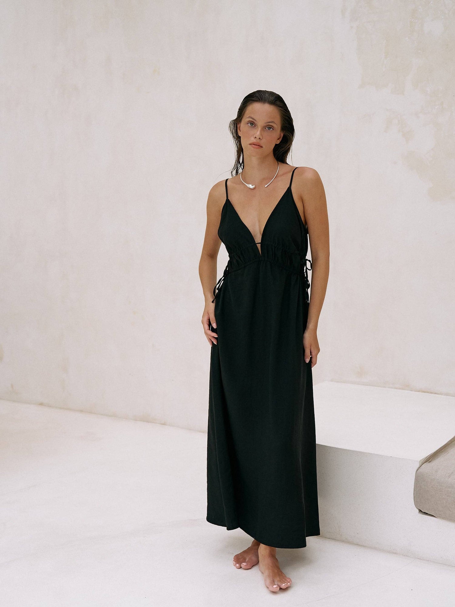 Sofia Ties Maxi Dress - Black