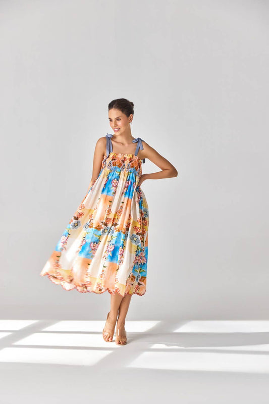 Taylor Dress Cotton Midi Block Print