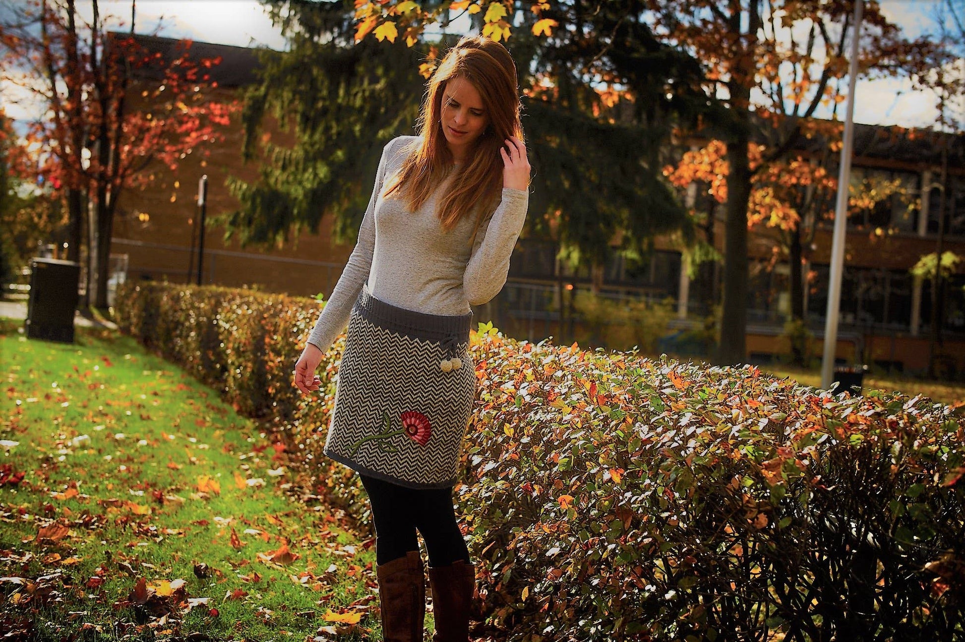 Part of our heritage Carmen collection, this skirt is graced with a classic all-over charcoal chevron pattern and finished with floral hand-embroidery. A tipped hem and thick knitted waistband give this skirt balance and symmetry, while an elastic waist, adjustable pompom wool string and stretch lining make the Carmen as comfortable as she is comely.