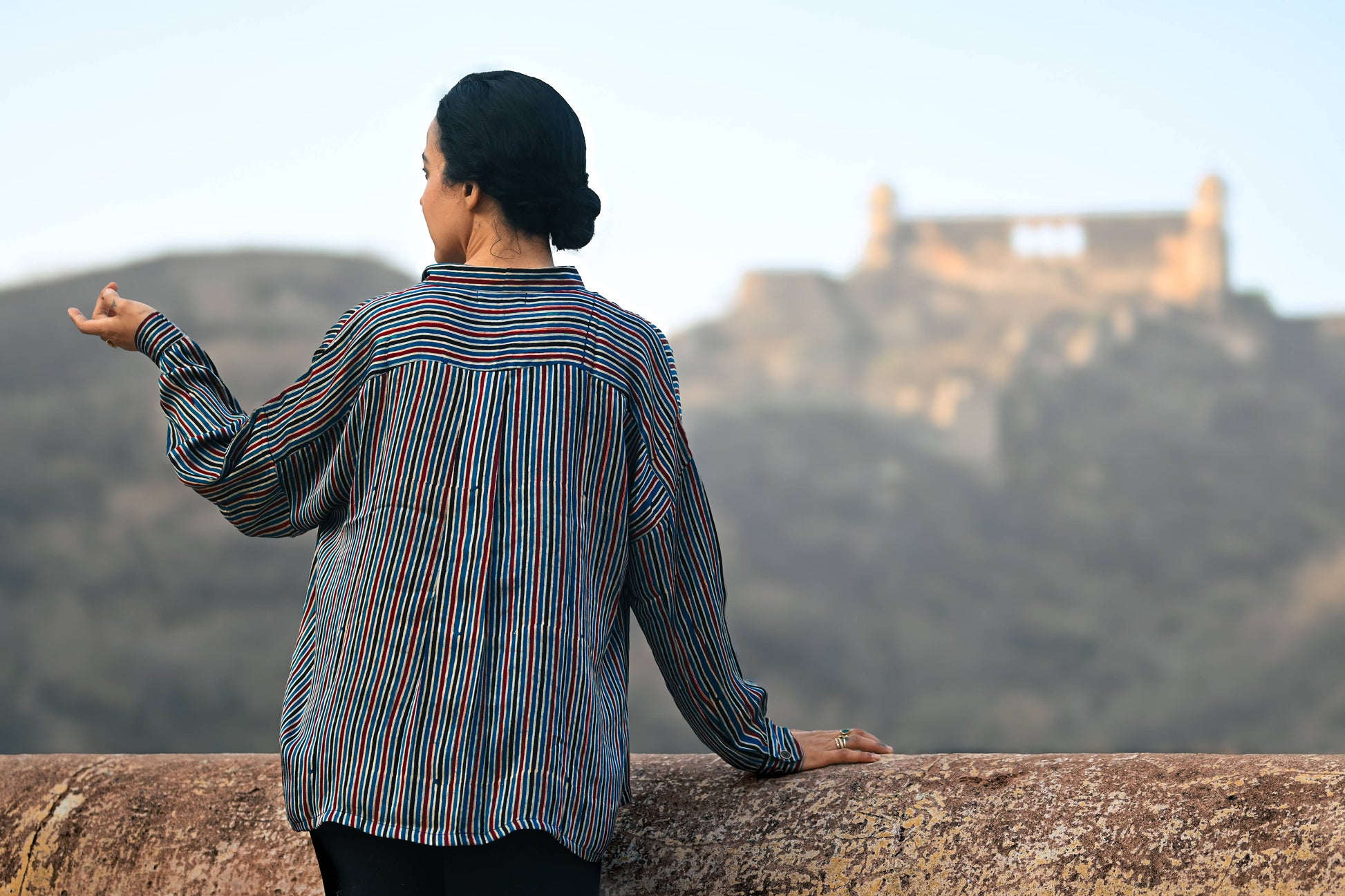 These blouses are made from luxurious hand block-printed modal silk—a beautiful blend of silk and satin. They offer a look that’s effortlessly elegant and comfortably casual. The soft, flowing fabric drapes gracefully, making you feel confident, comfortable, and effortlessly refined all day long.