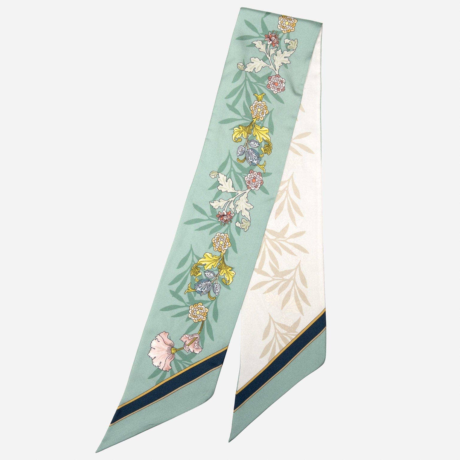 Sabrina is a long, skinny silk scarf (also called a bandeau or large twilly), made in Como Italy from 100% silk twill. Tie her around your neck, wrist, bag, or hair.