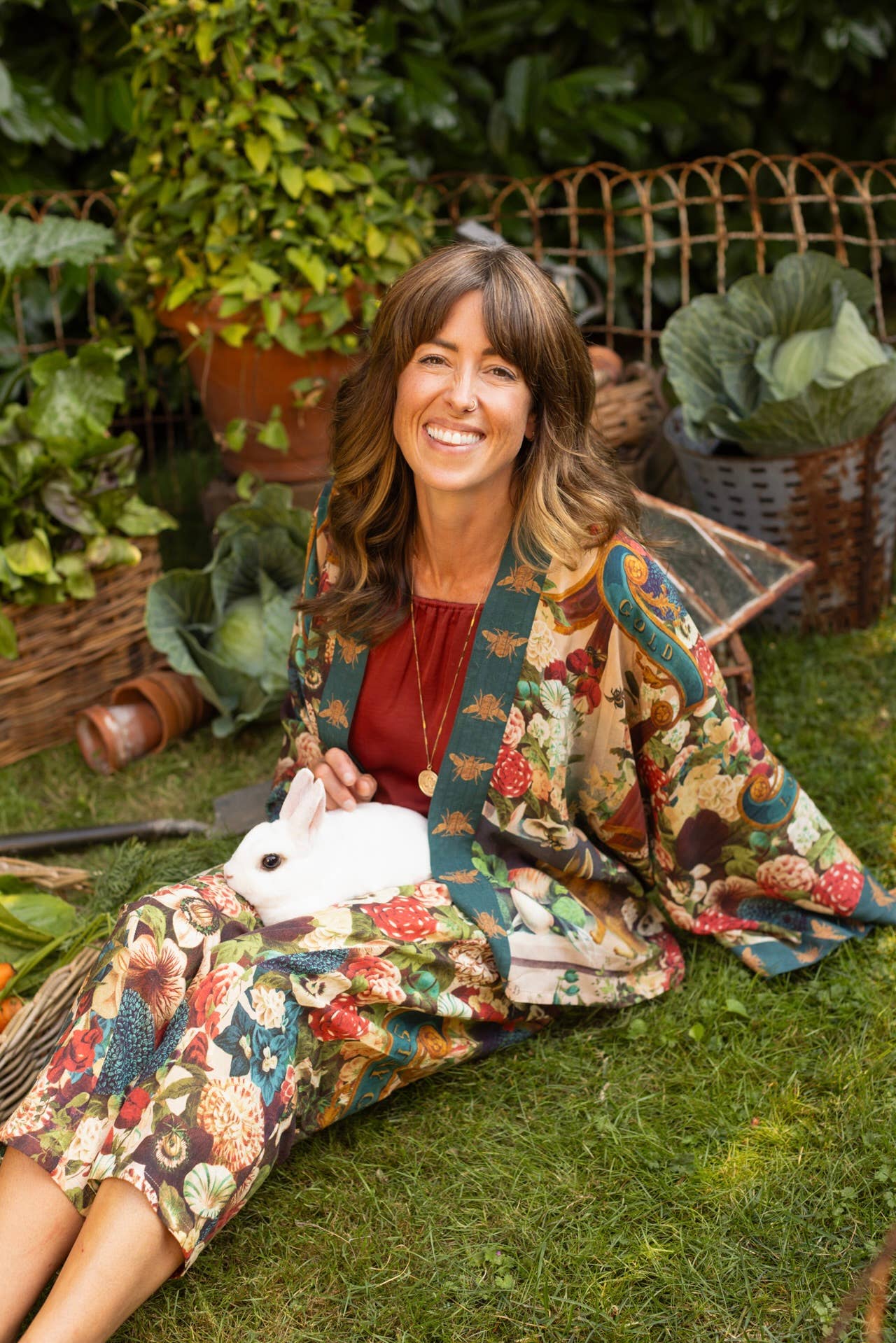 Stay Gold Linen Cropped Artist Pant w/ Bees, Floral & Rabbit